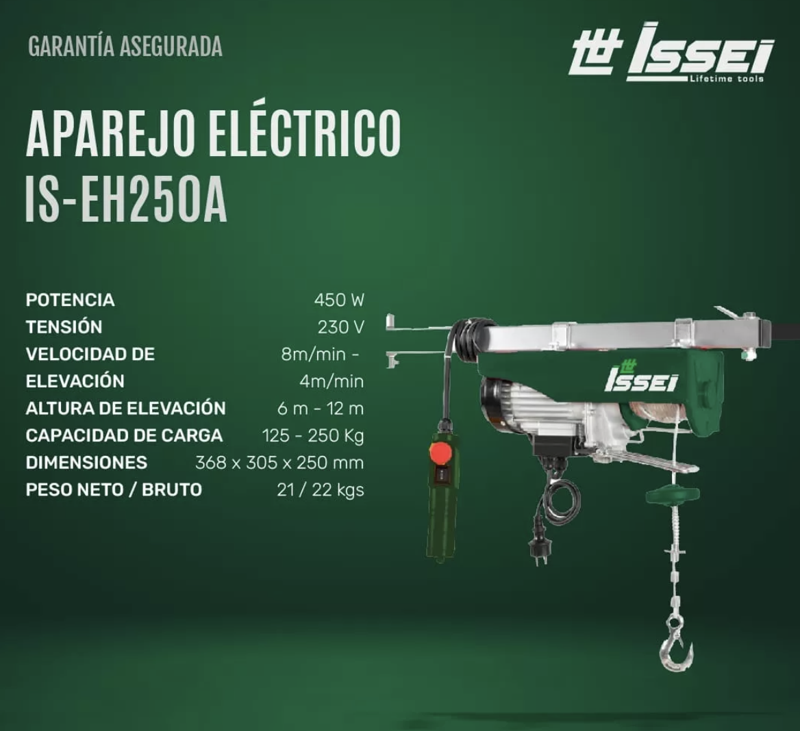 APAREJO ELECTRICO 125/250Kg ISSEI CABLE DE ACERO IS-EH250A