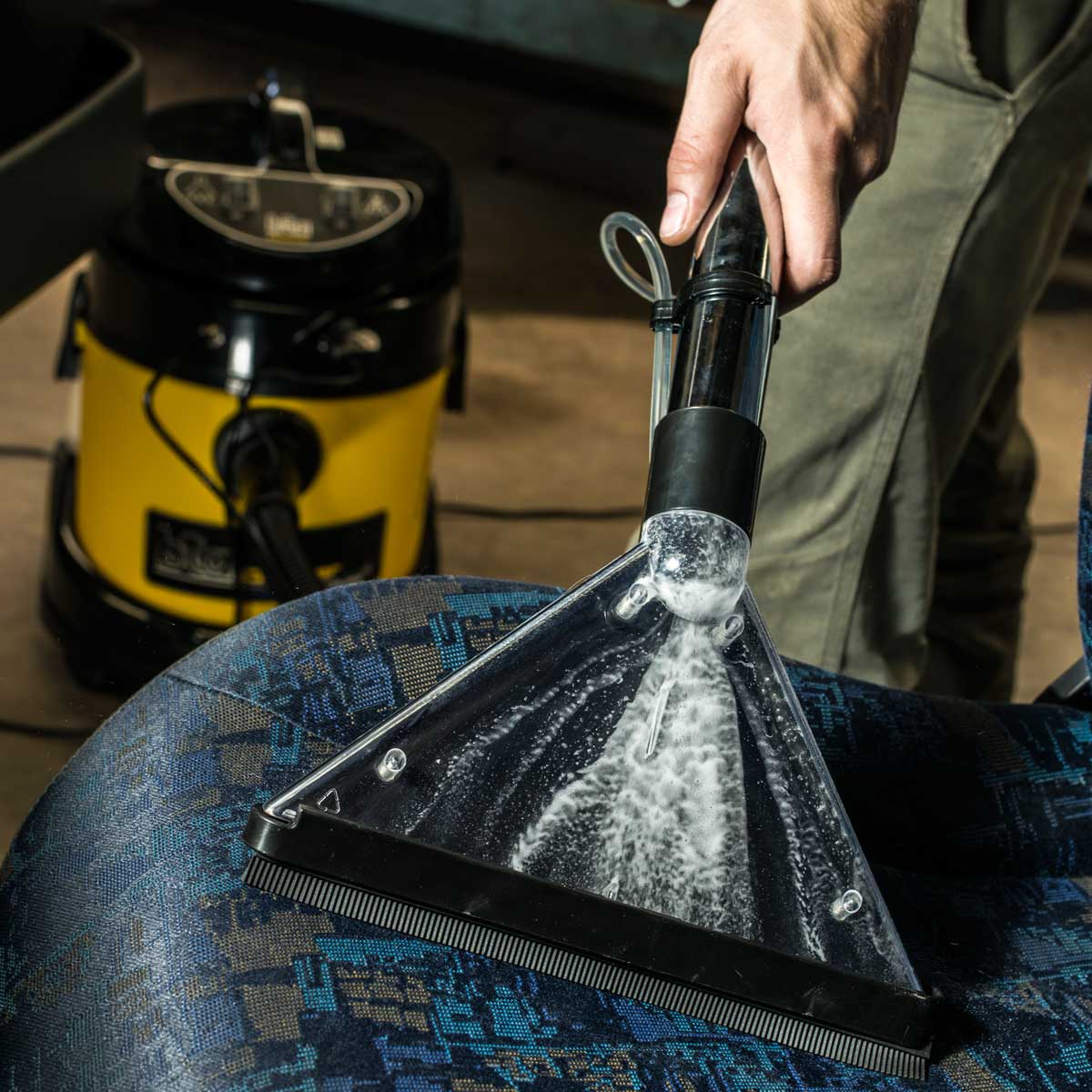 La aspiradora limpia tapizados funciona gracias al líquido de limpieza que se pulveriza con presión para actuar en profundidad en el tapizado y se aspira junto a la suciedad desprendida. De esta manera la grasa, la suciedad y los olores se eliminan eficazmente.