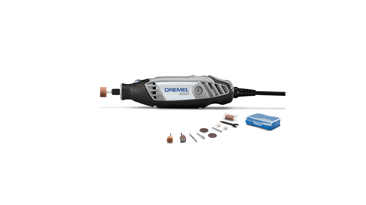 Este juego incluye la multiherramienta Dremel 3000 y 10 accesorios Dremel distintos. La herramienta cuenta también con la tapa de punta EZ Twist™ con llave integrada. De este modo, la tapa de punta se puede usar como llave para apretar accesorios, lo que elimina la necesidad de una llave aparte. El diseño más eficiente del ventilador y las rejillas de ventilación laterales contribuyen a reducir la temperatura de la herramienta, mejorando así la comodidad para periodos de uso prolongados. La herramienta cuenta también con un diseño simétrico que incluye una tapa de punta con forma de trompeta para facilitar un agarre tipo lápiz.