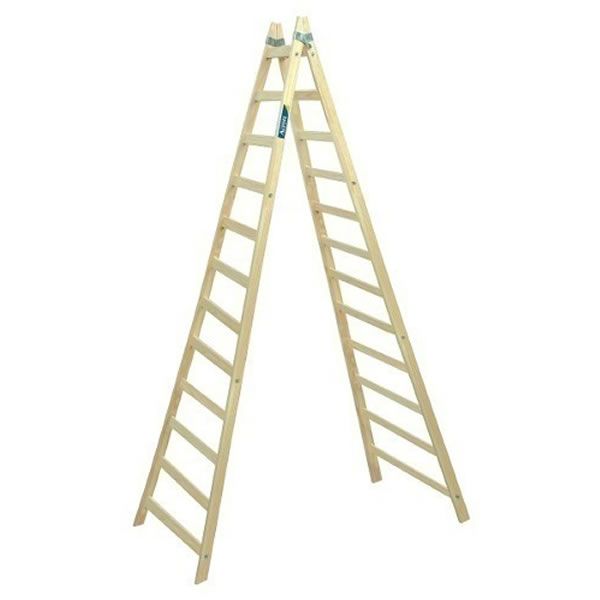 - Escalera de madera ideal para uso profesional con bisagra galvanizada y reforzadas.