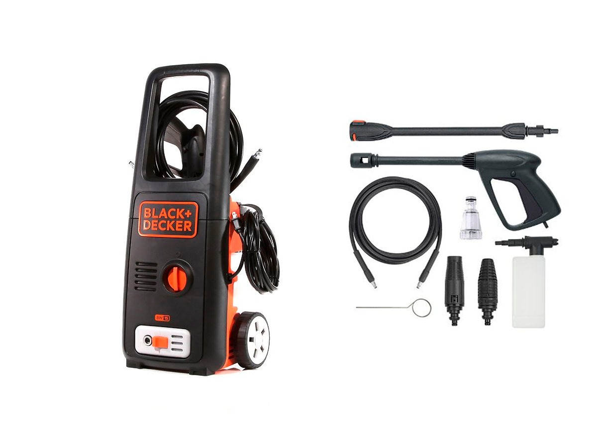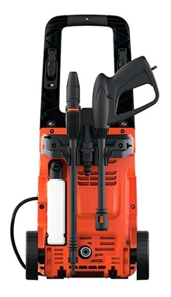 - Incluye: manguera – pistola con seguro – tubo de alta presión – boquilla regulable – boquilla giratoria – filtro de agua – aplicador de detergente – juego de ruedas
