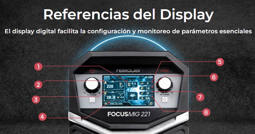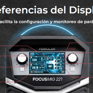 La FOCUSMIG 221 es una soldadora sinérgica y multiproceso diseñada para trabajos de alto rendimiento. Compatible con rollos grandes de 15 kg, es perfecta para aplicaciones continuas, reduciendo la necesidad de cambiar el consumible con frecuencia. Su pantalla LCD permite al soldador ajustar y visualizar parámetros clave como amperaje, voltaje y configuraciones sinérgicas, optimizando el proceso de soldadura.