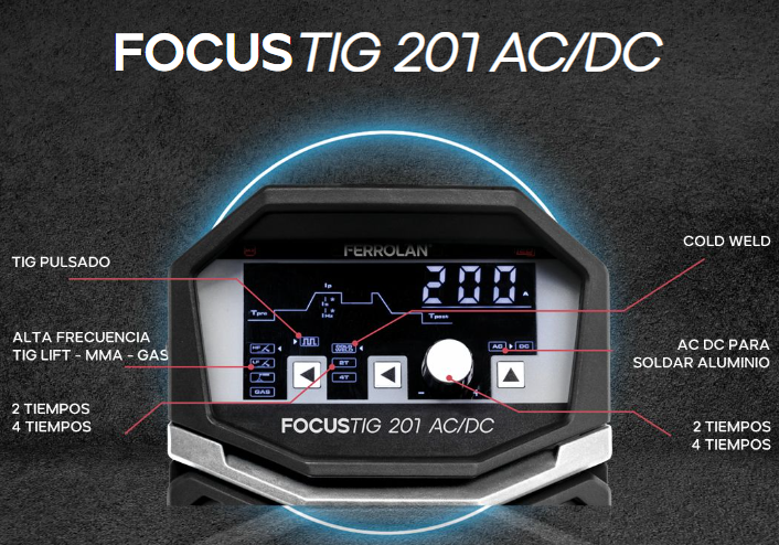 La FOCUSTIG 201 AC/DC combina versatilidad y precisión para soldar una amplia variedad de materiales. Ideal para soldar aluminio, aceros y materiales finos.