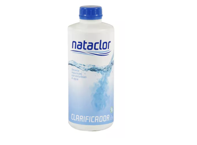 El Clarificador Nataclor es un líquido cuya acción floculante ayuda a mantener el agua cristalina. Aglomera las partículas suspendidas en el agua, depositándolas en el fondo para ser removidas fácilmente por el limpiafondo.