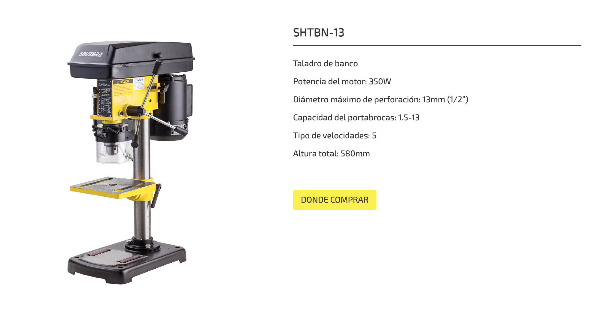 - Taladro de bancoDIÁMETRO MÁX DE PERFORACIÓN: 13 mm (1/2”)