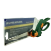 - Practico botón de seguridad que mantiene las cuchillas cerradas cuando la tijera no esta en uso.